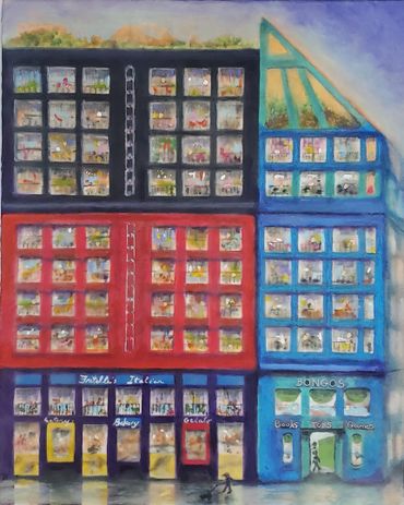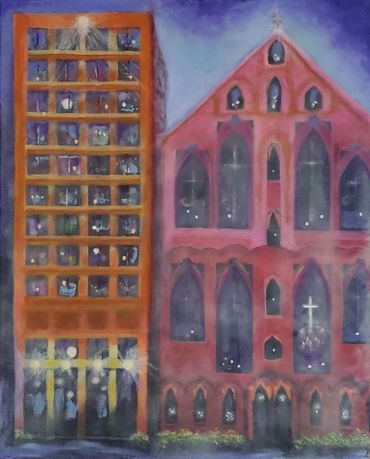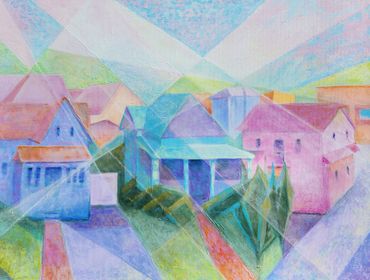 Sometimes inspiration leads me to paint buildings. During the pandemic I found myself drawn to grids and relationships, which evolved into the series “Grid City,” a reflection of how humankind adapts to living in quarantine. In every painting the interplay of light and color on structures creates a unique visual experience, reminding us of our resilience and capacity for transformation.